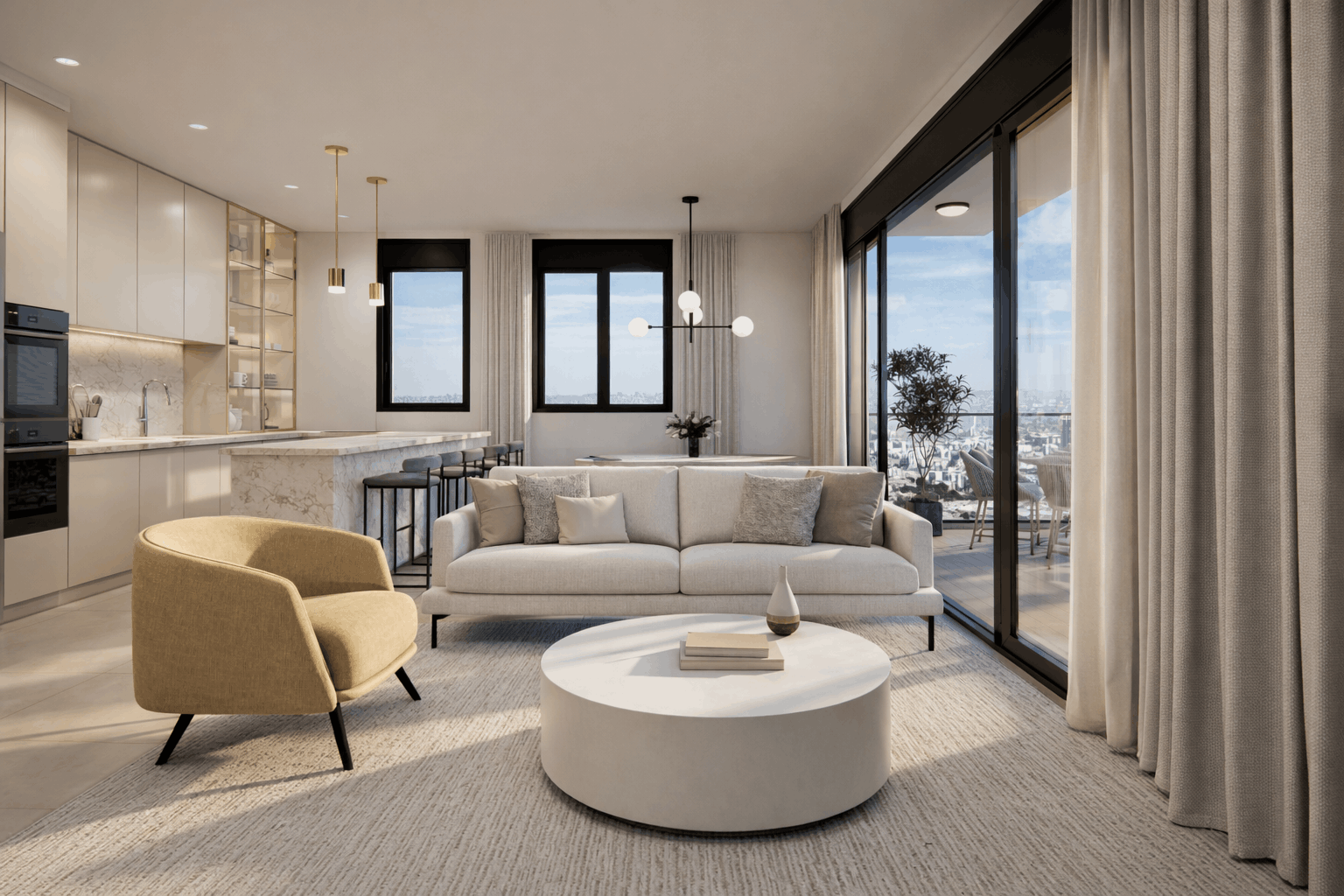 The interior designer leading the design of the project’s interior spaces is Michal Ginzburg, who has extensive experience in planning and designing interiors for advanced projects. Her firm guides the process from the stage of developing a unique concept in collaboration with her clients, continuing with meticulous attention to detail, a harmonious blend of textures and colors, and culminating in the creation of a residential masterpiece.