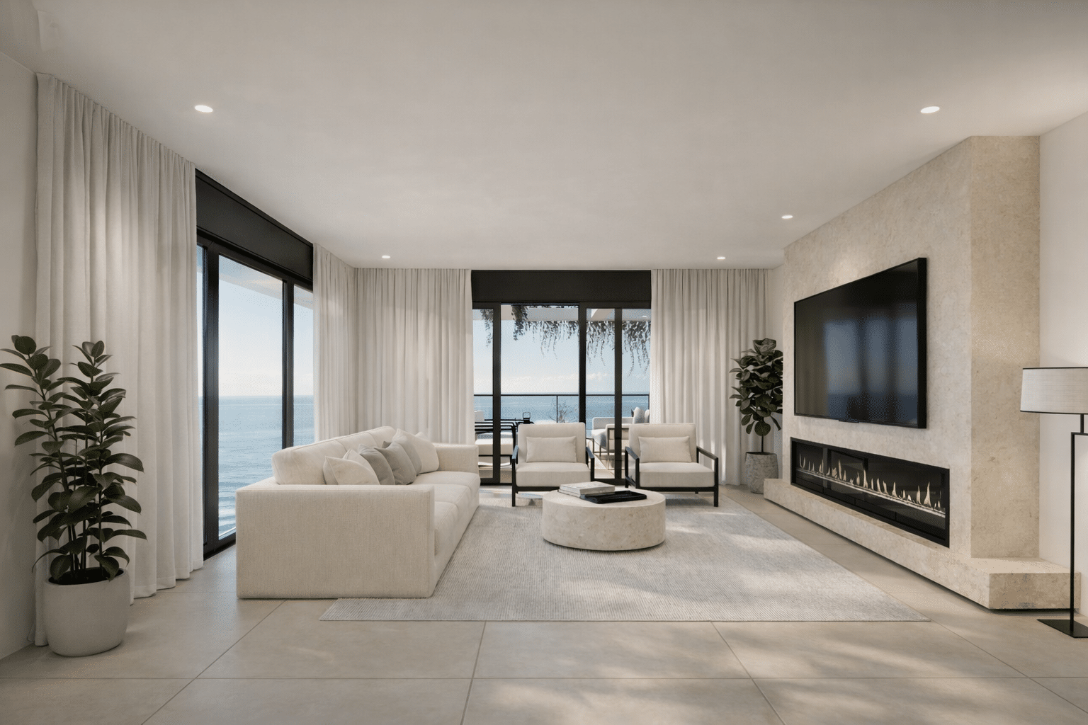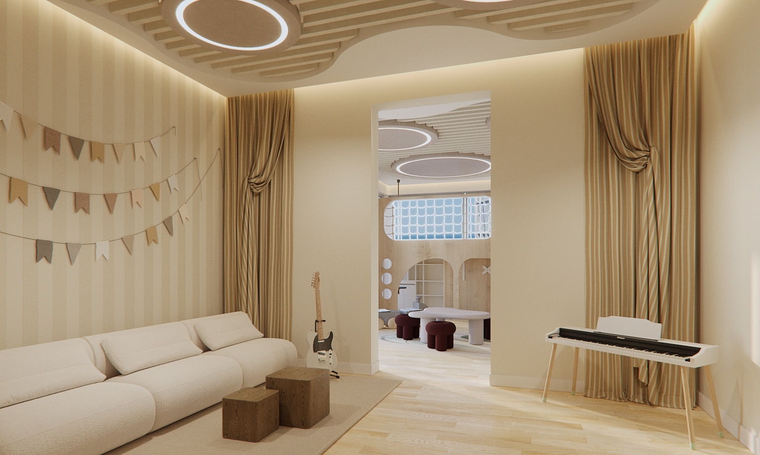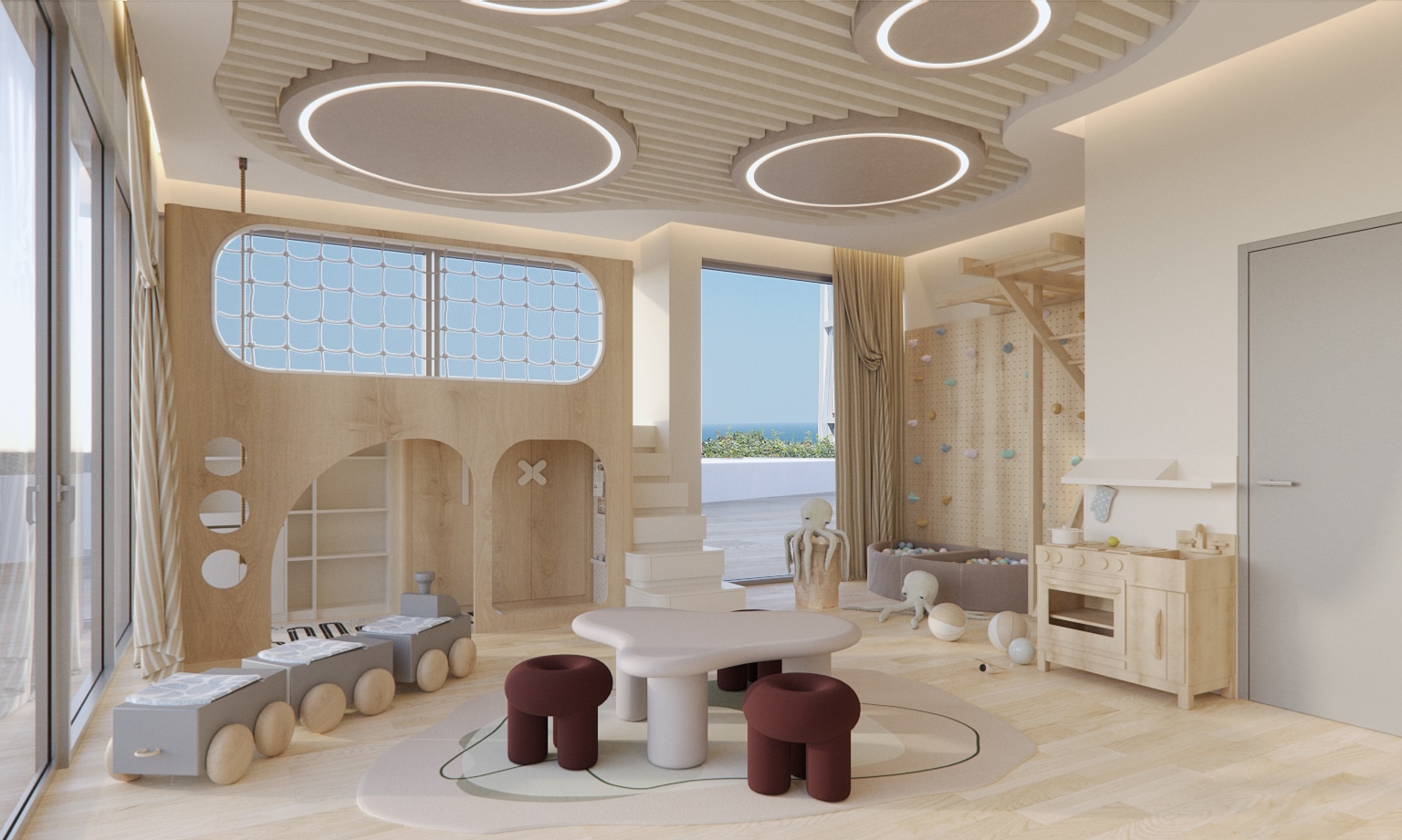 “עיצוב הפנים אשר בא לידי ביטוי ברופטופ ובלובי הפרויקט מציע שילוב הרמוני בין אנרגיה אורבנית לשלווה חופית, ושואב השראה מהקצב הטבעי של הים. קווים רכים וחומרים טבעיים יוצרים מעבר זורם בין שני המגדלים, והחצר המשותפת מעודדת קהילתיות וחיבור.